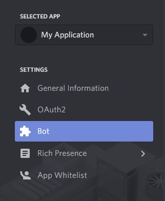Discord APP 信息填写完成后,回到主界面,在左手侧菜单转到 BOT。