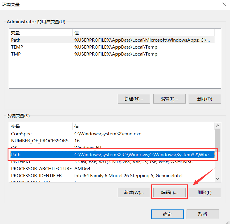 系统变量里找到Path,点编辑,新建一条路径,填写MySQL的安装地址的bin目录:D:\MySQL5.7\bin